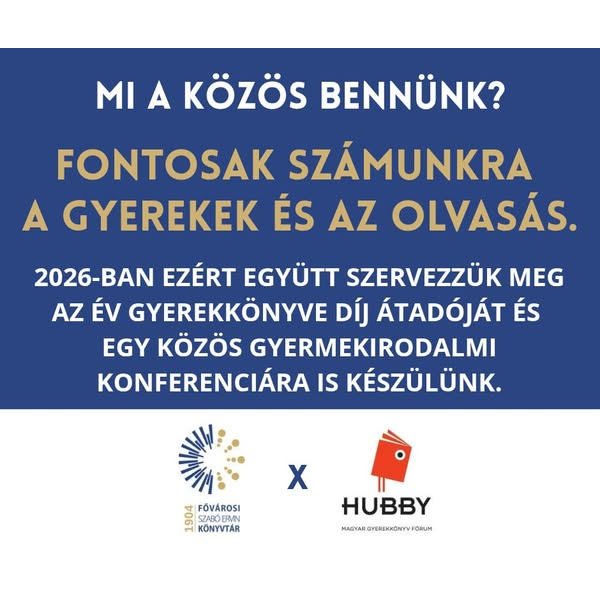 Együttműködési megállapodást kötött a Fővárosi Szabó Ervin Könyvtár (FSZEK) és a HUBBY - Magyar Gyerekkönyv Fórum, melynek keretében 2026-ban a partnerek közösen szervezik meg az Év Gyerekkönyve Díj átadóját a FSZEK Központi Könyvtárának otthont adó Wenckheim-palotában, emellett egy közös gyermekirodalmi konferencia megvalósítására is sor kerül tavasszal. A megállapodást Kovácsné Koreny Ágnes, a FSZEK főigazgatója és Berg Judit, a HUBBY elnöke írta alá.