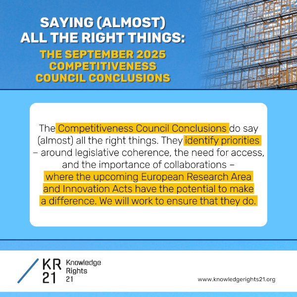 Ahogy a cím is sugallja, a következtetések (szinte) mindenben helyesek. Meghatározzák a prioritásokat – a jogalkotás koherenciája, a hozzáférés szükségessége és az együttműködés fontossága terén –, ahol a közelgő európai kutatási térségről és innovációról szóló jogszabályok változást hozhatnak.