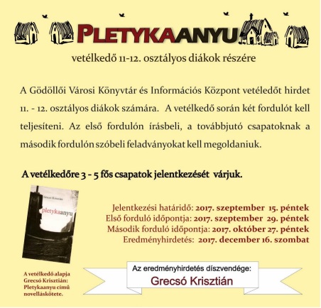 A Pletykaanyu olvasóvetélkedő középiskolás (11–12. évfolyamos) diákoknak szól, 3–5 fős baráti csapatok részére, Grecsó Krisztián Pletykaanyu című novelláskötete alapján, a kortárs magyar irodalom megszerettetésére. Másodlagos célja a pletyka mint társadalmi jelenség vizsgálata, két fordulóval és három személyes közösségi alkalommal, könyvtárosi segítség lehetőségével.